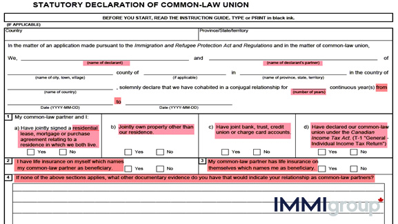 - IMM 5409 – Statutory Declaration of Common-law Union