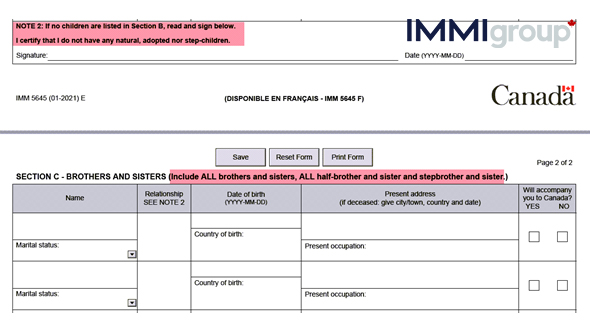 - IMM 5645 – Family Information Form – Visitors, Students, and Workers