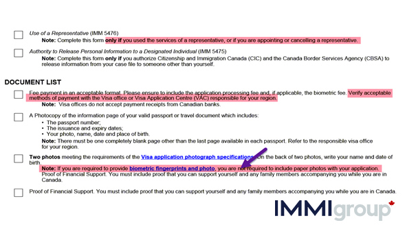 - You pay the correct amount of fees – including your biometric fees which most visitors will have to provide.