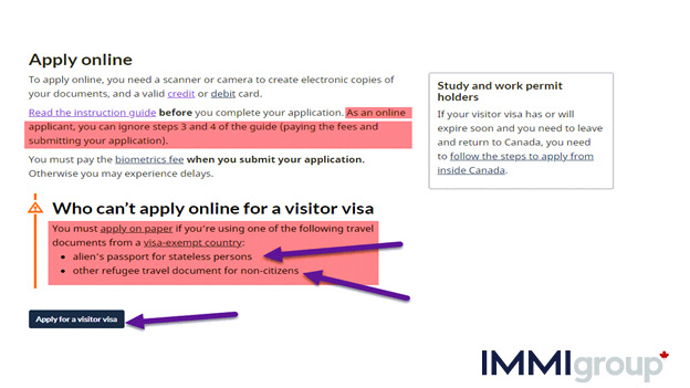 The following types of visitors to Canada must apply through the IRCC Portal: