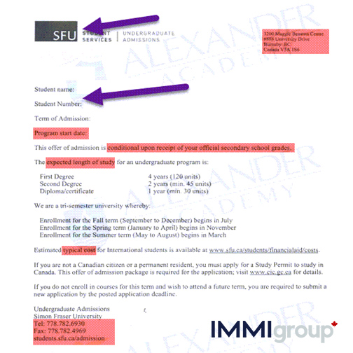 If you use the checklist above against this sample LOA, you’ll see it contains most but not all of what IRCC strongly recommends a Letter of Acceptance includes. Note that it’s missing the following: