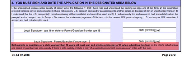 In section 2 you’ll be asked whether you’re also applying for a replacement passport (by using form DS-11) and you’ll be asked to explain how the loss or theft occurred. At the end of section 2, you’ll be asked if you have previously lost your passport or had it stolen. Please understand that repeated loss or reported theft of your passport may affect your ability to obtain a replacement passport.