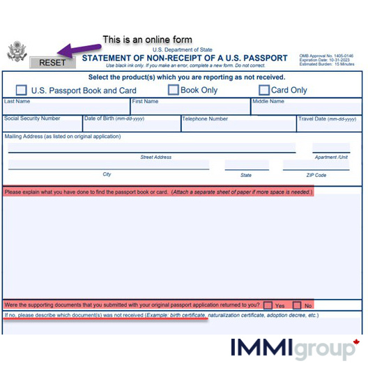 Form DS-86 STATEMENT OF NON-RECEIPT OF A U.S. PASSPORT